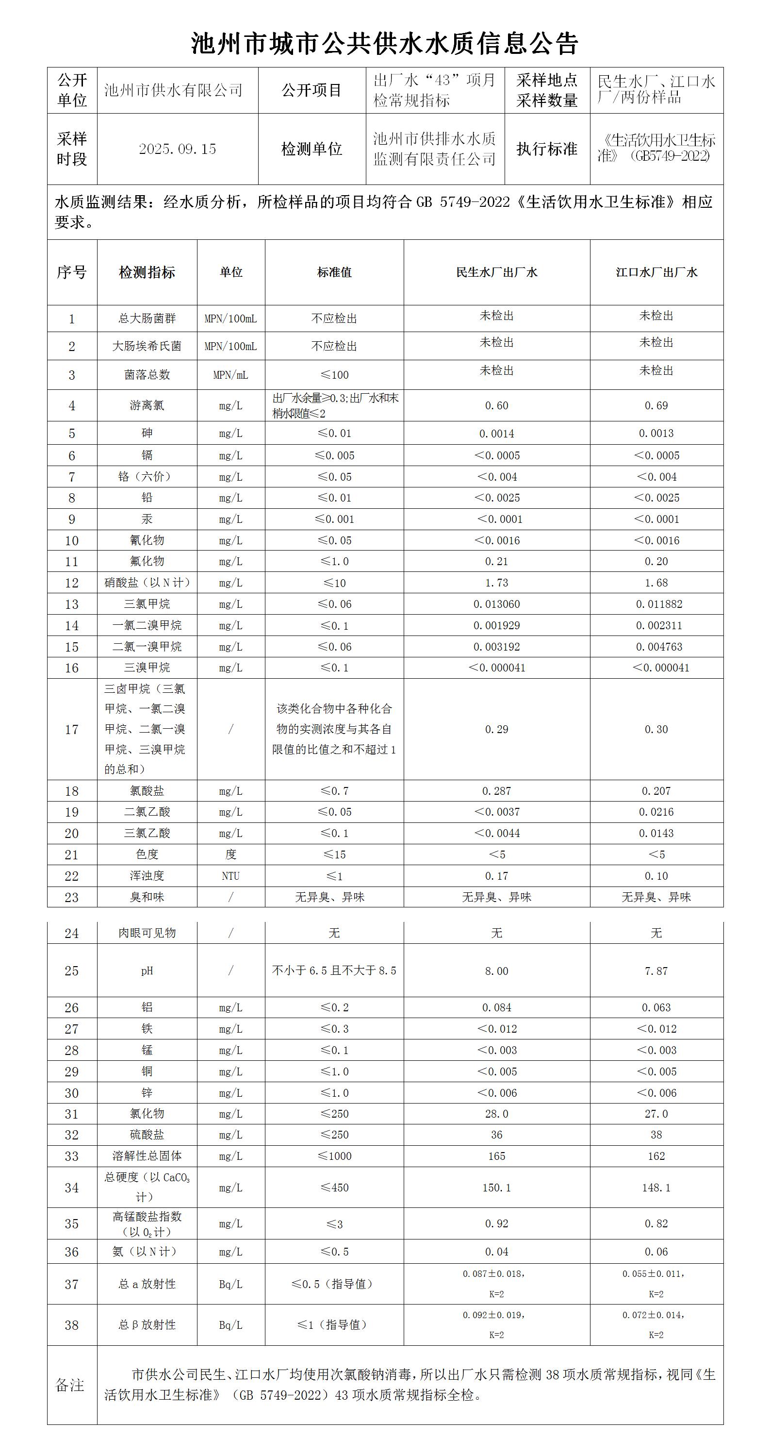 池州市城市公共供水水質(zhì)信息公告9月份出廠水月檢常規(guī)指標(biāo) | |